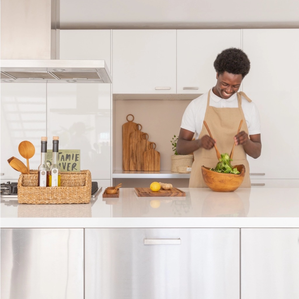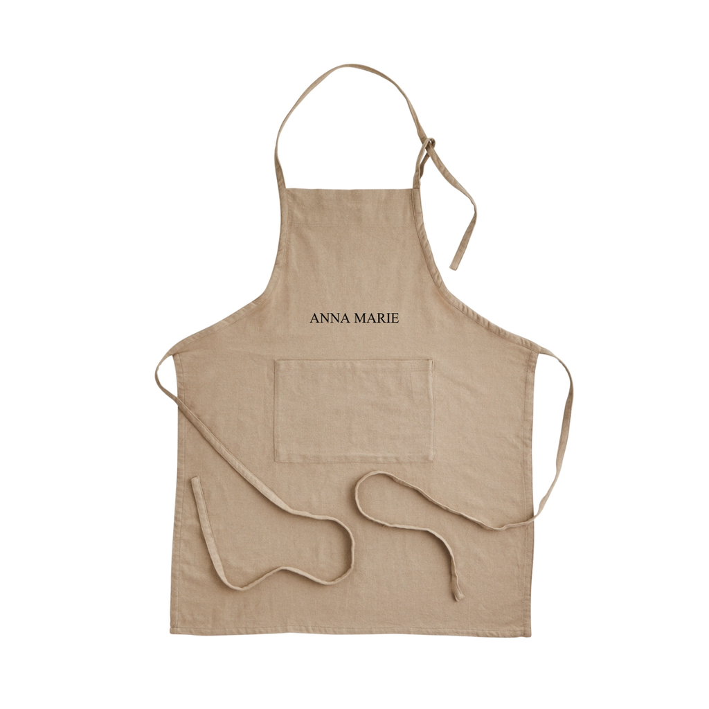 Das perfekte Geschenk für alle die gerne Kochen & Backen. Diese personalisierbare Schürze in Beige wird aus recycelten Textilien auf traditionellen Handwebstühlen gefertigt und überzeugt durch ihre natürliche Optik und hochwertige Verarbeitung.